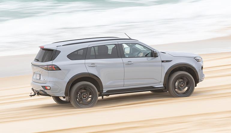 Beach or desert, hot or cold, reducing tyre pressure on sand is crucial. Your tyre-pressure placard, located on the driver’s door sill, is there to give you a starting point for the bitumen. When sand beckons, ensure a 30-50 percent reduction on that PSI/kPa number. That creates a longer contact footprint between rubber and surface, which will float your boat rather than leave you floundering, and the straighter you can keep that steering wheel, the better. Use HIGH range (turn off traction and stability control) on the longer flatter sections and LOW range in the fluffy bits.
